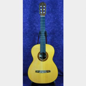 最上級機種のマエストロをさらにカスタマイズしていますので、使用材料も厳選されており、表面板は最上級ジャーマン・スプルース、サイドバックはブラジル/ハカランダ地方の最上級ハカランダ、ネックはセドロの河野氏オリジナルの独創的な一本棹となっております。 また、ブリッジはハカランダで、マエストロ専用の独創的で見事なデザインとなっています。