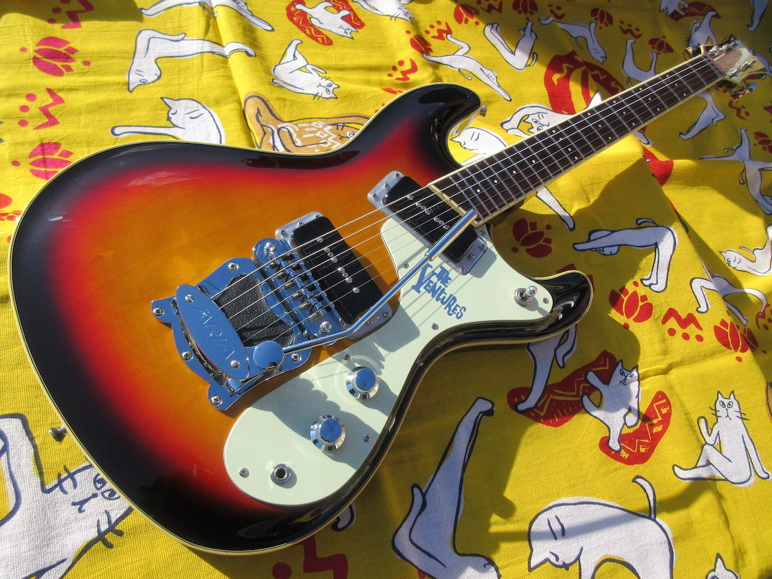 Ventures40周年記念に製作され、2001年に発売。長年ライブでも愛用されているベンチャーズ・ドン・ウィルソンモデルです。なめらかなカーブドトップボディに、アルニコVマグネットを使用したVOS-1ピックアップ、完全オリジナルハンドメイドブリッジ&トレモロを搭載しています。